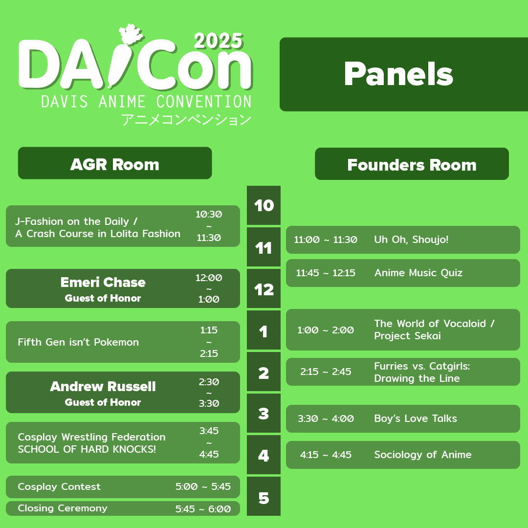 Details for panels, artist alley, games area, stage performances, and cosplay gathering are out now!Check events for more info!